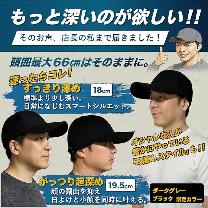 大き目サイズを買ったけど思っていたより浅くて脱げてしまう・・・ 幅が狭くてこめかみが痛くなる・・・ 被れるけどなんだか似合わない・・・ そんなお悩みをすべて解決する、しっかり被れる大きさのキャップです。