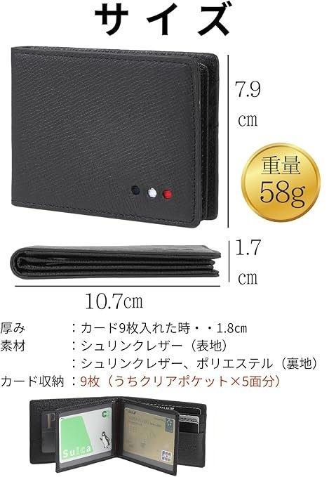 *カード9枚入れても厚さ1.8cm「素材」本革(牛革) *シュリンクレザー