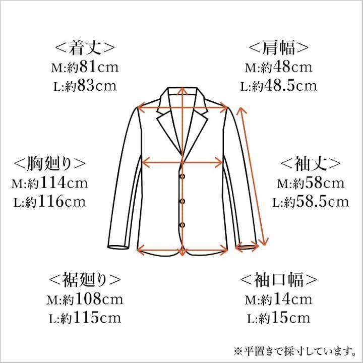 <Lサイズ> 肩幅48,5cm、胸廻り116cm、裾廻り115cm、着丈83cm、袖丈58,5cm、袖口幅15cm