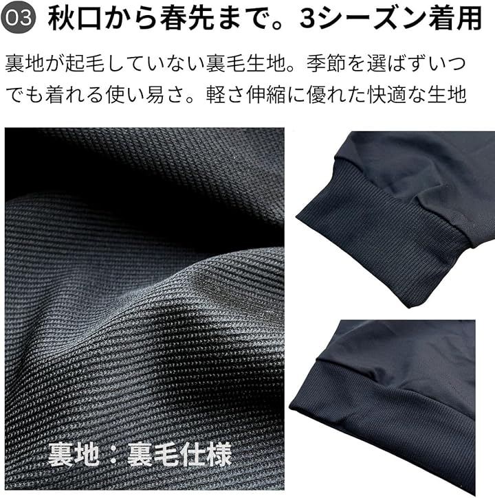 特徴として裏地が起毛をしていないので、春秋冬のロングシーズン着用可能。