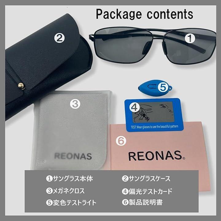 「PUレザー眼鏡ケース付属」「マイクロファイバークロス付属」「偏光テストカード・変色テストライト付属」