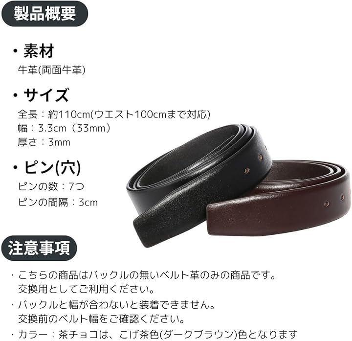 「厚さ・ピン」標準的な厚さ3mmのベルト。