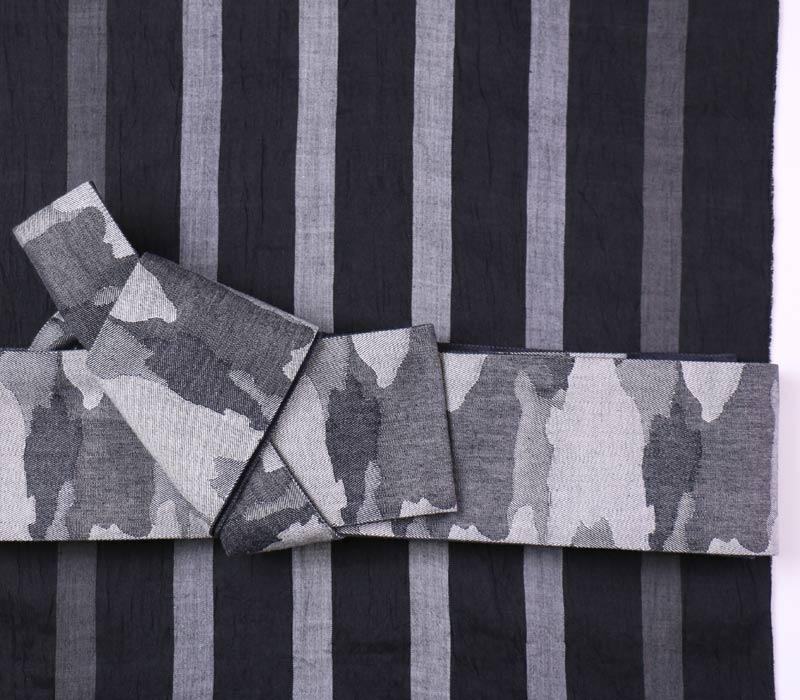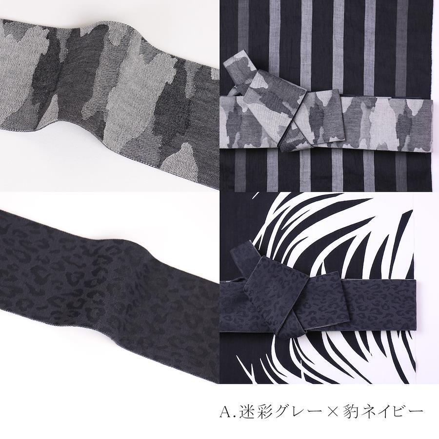 ざっくりとしたジャガード織りの帯地。迷彩柄やレオパード柄を組み合わせたアバンギャルドなデザイン。博多帯のような「カチッと」したイメージ・結び心地とは異なり、柔らかめの素材感と気軽さが特徴の帯。とびきり個性を楽しみたい、というお方へお勧めの商品です。デニムやチェックの着物、ブーツなどと合わせて洋装感覚に合わせてみたり…。デイリーなお洒落帯。ラフなお出掛けきものに合わせてコーディネートください。【素材】綿100% 日本製【お手入れ方法】ご自宅での手洗いが可能です。乾燥機の使用はおやめください。【寸法】長さ:約4m 帯幅:約9.5cm