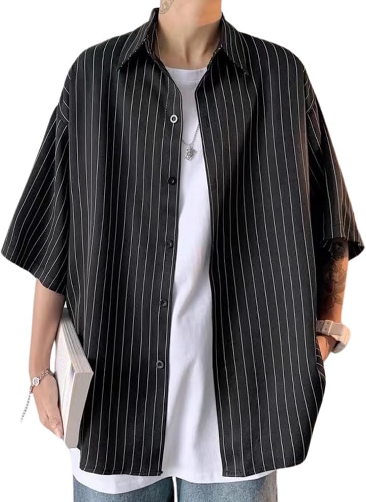 「ストライプ柄が映えるおしゃれな半袖シャツ」 スタイリッシュなストライプ柄が特徴のカジュアルシャツ。