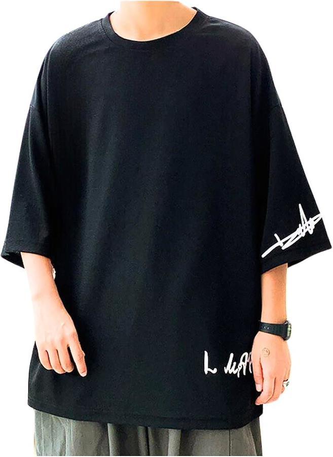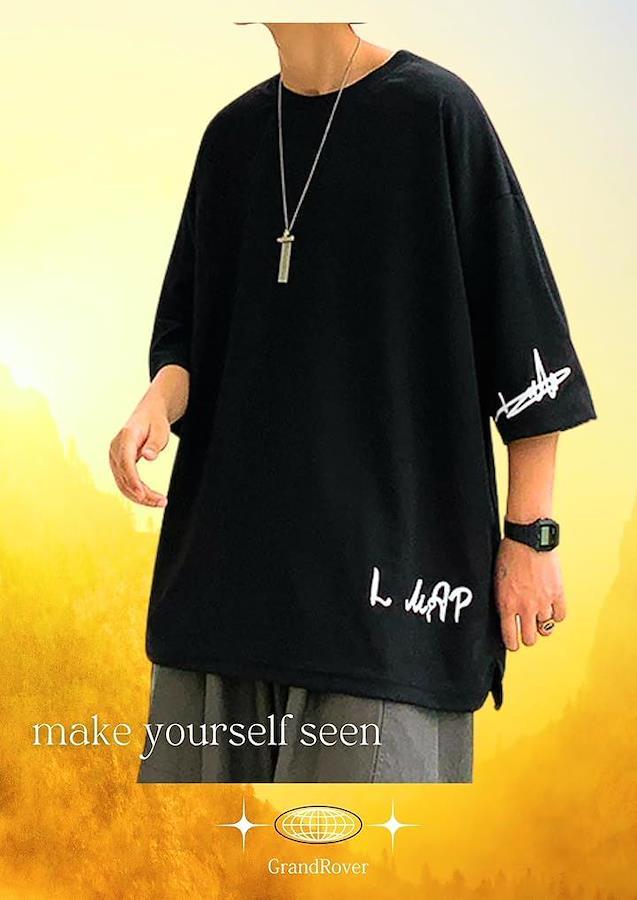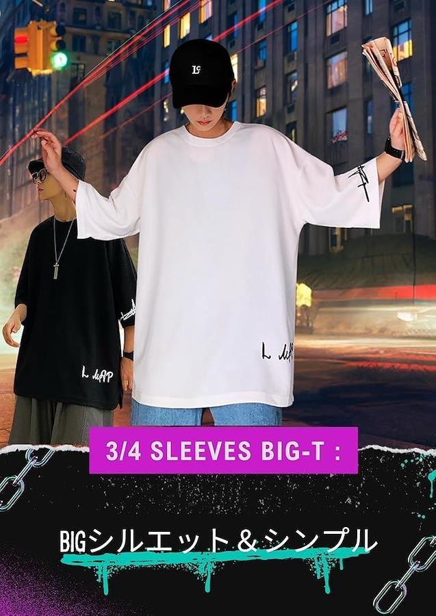 軽い着心地の七分袖 メンズ ビッグシルエットtシャツです ゆったり大きいサイズの この1枚でおしゃれ度アップ HipHopな夏服のマストアイテムです