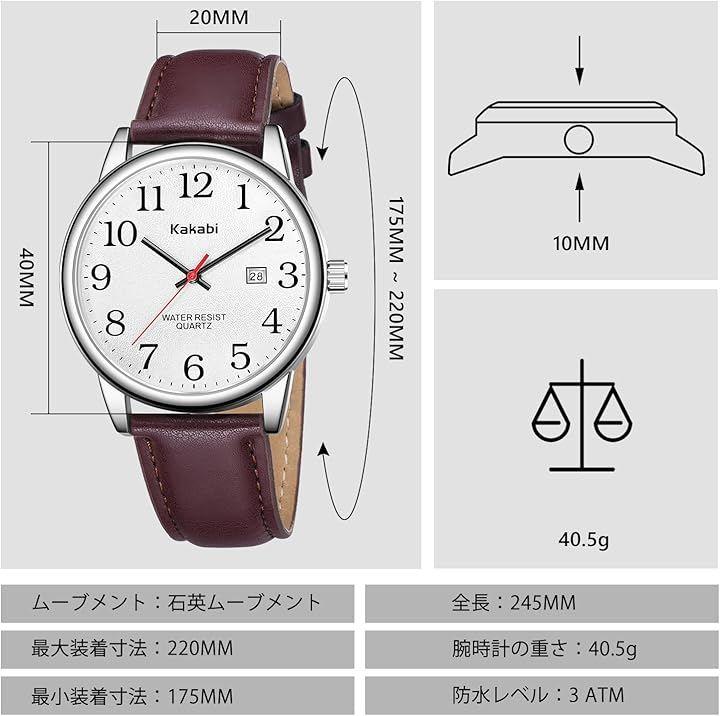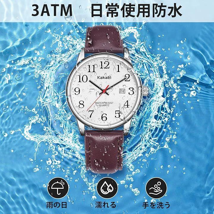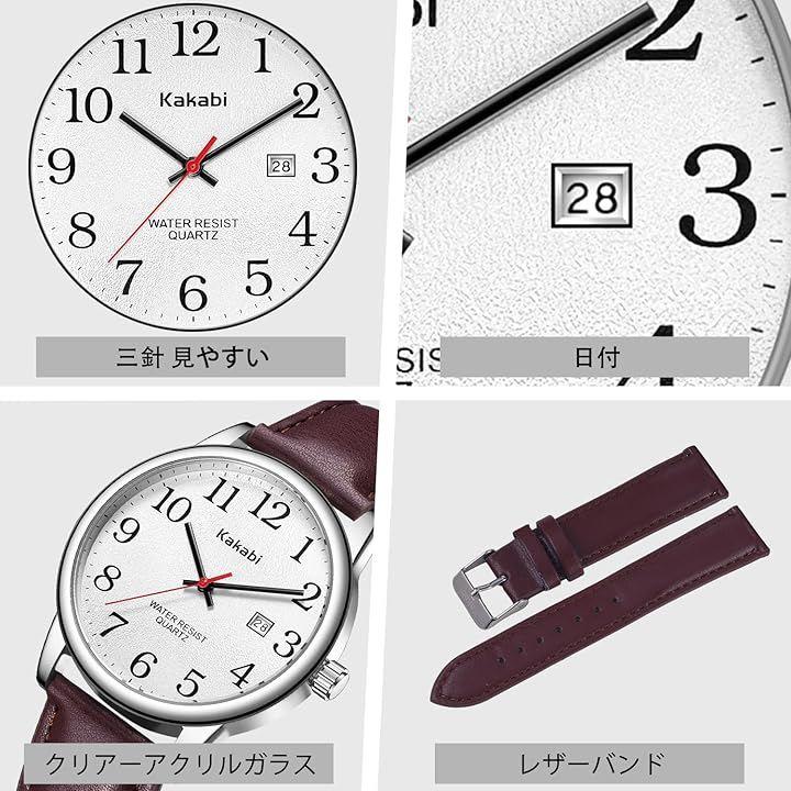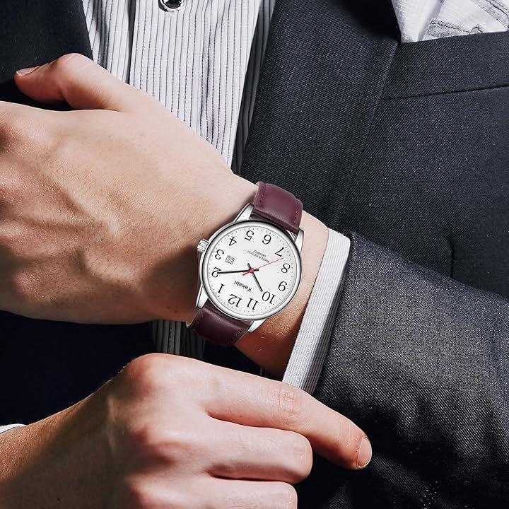 「見やすい 腕時計」:24時間を表す大きな数字とカレンダー窓、三針式時計、簡単に時間を読み取ることができます。