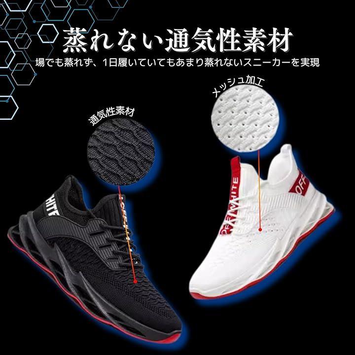 「通気性」一体織りメッシュは、軽量、通気、速乾など機能が優れて、熱がこもるのを防ぎ、さわやかな履き心地を提供してくれます。