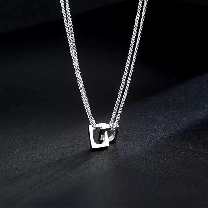 「洗練されたスクエア&ダブルリングデザイン」存在感のあるスクエアモチーフとダブルリングを組み合わせた独自デザインのネックレス。