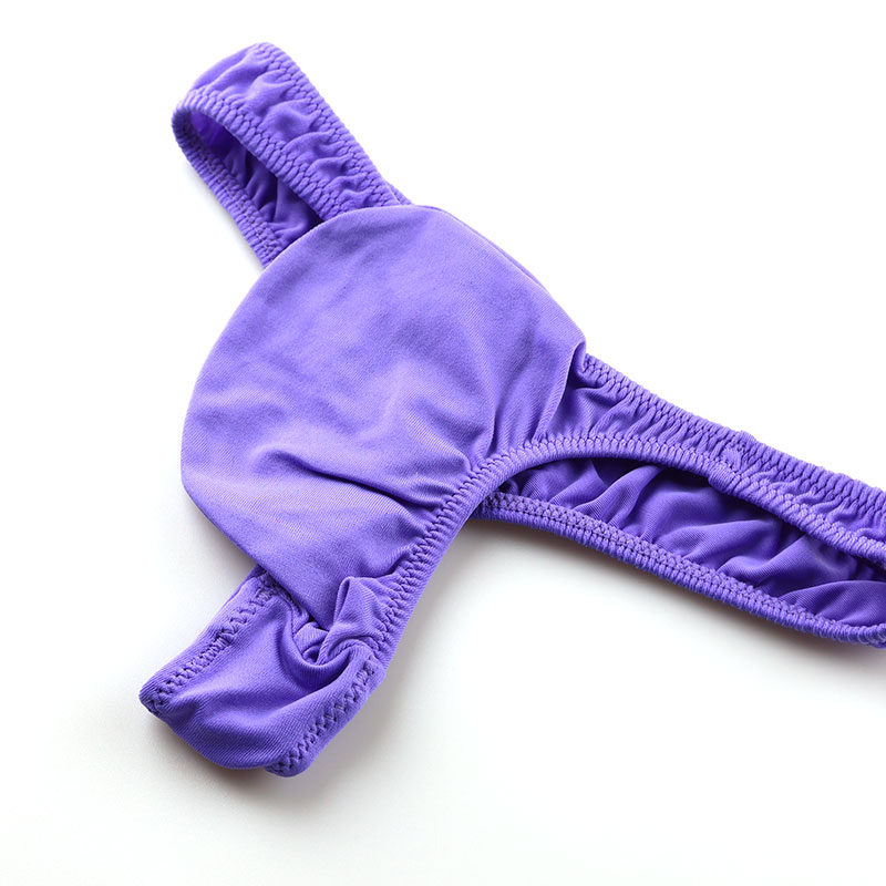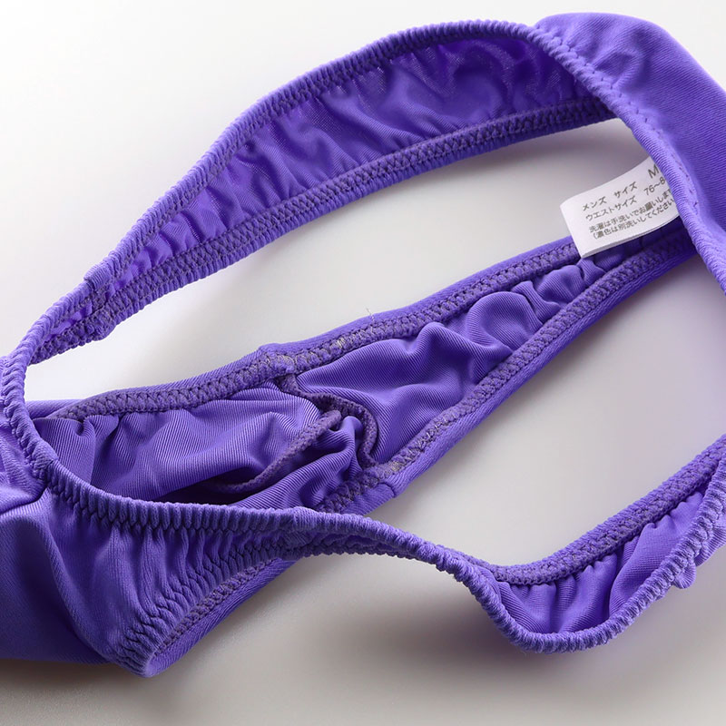 少し透け感のある薄さでしっとしとしサラサラとした気持ちのいい肌触りが特徴のSSS生地を使ったTバックビキニになります。フロントは男性自身を収めやすくなった立体的なポーチ型構造になったメンズ下着になります。