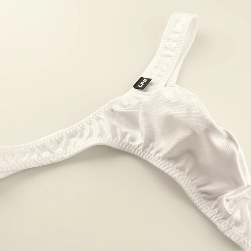 厚みがあり、光沢感のあるWET素材のストレッチ生地は、見る人の目を引く輝きを持ち、触れるとしっとりとした滑らかさが感じられます。その表面は光を反射して、独特の輝きを放ち、ストレッチ性があるため着用時の動きを制限せずに体にフィットするスーパーWET生地を使用したTバックビキニになります。フロントはフルシームで男性自身を収めやすく設計された立体型ポーチになったメンズ下着になります。