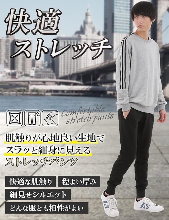 「快適ストレッチのジョガーパンツ」Village Varietyのメンズ向けスウェットパンツです。