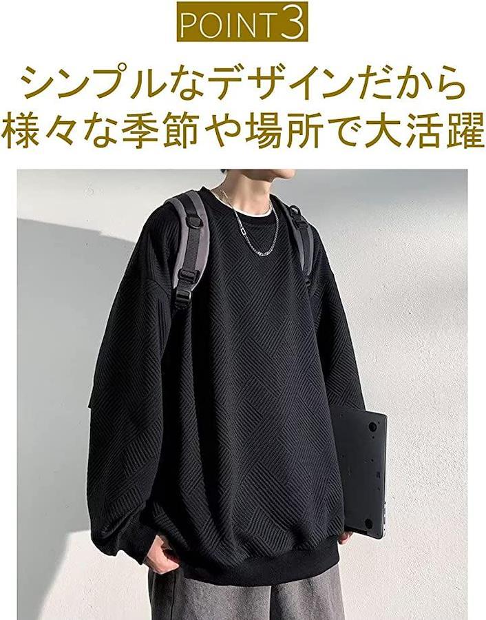 ・「秋冬春の幅広いシーズンで着用可」季節を選ばないデザインだから秋冬春のどの季節でも活躍できる長袖トレーナーになっています。