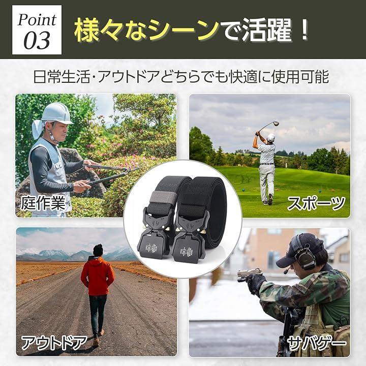 庭作業、アウトドア、スポーツ、サバゲーなど、あらゆるシーンで活躍するベルトです。