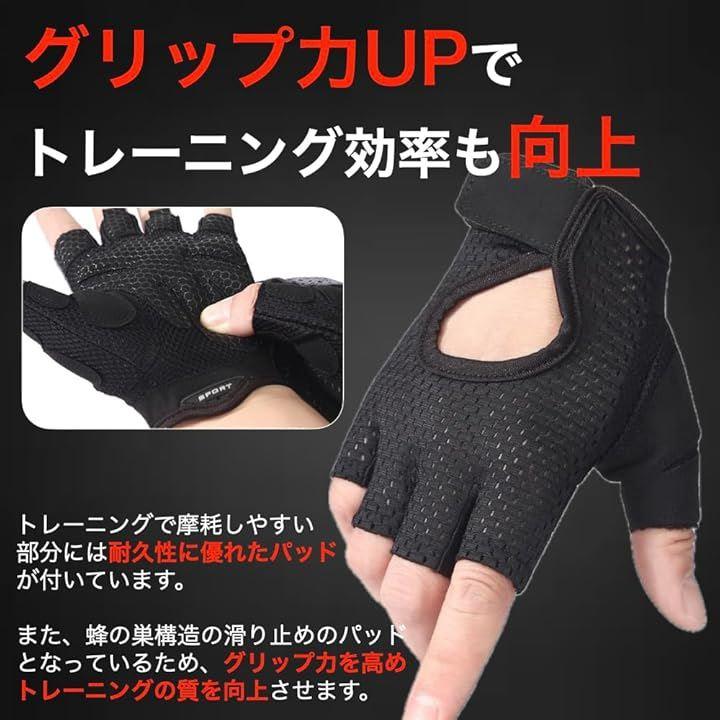 「ホールド力UP」手のひらには滑り止め加工が施されており、握力を補助し、筋トレのトレーニング効率を上げ狙った部位に効かせることできます。