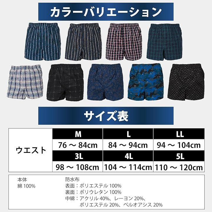 「メンズちょい漏れ対策トランクス」 このトランクスは、ちょい漏れ対策として設計されており、吸水性が高く、約30ccの液体を吸収します。