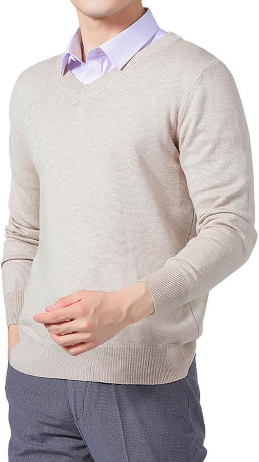 上品でシンプルなデザインのVネックセーターは、ビジネスからカジュアルまで幅広く活躍するトップスです。