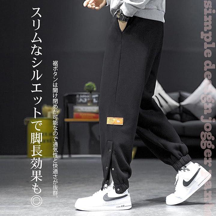 「デザイン」無地でワンポイントのロゴというシンプルなデザインで穿き回しやすいジョガーパンツ。