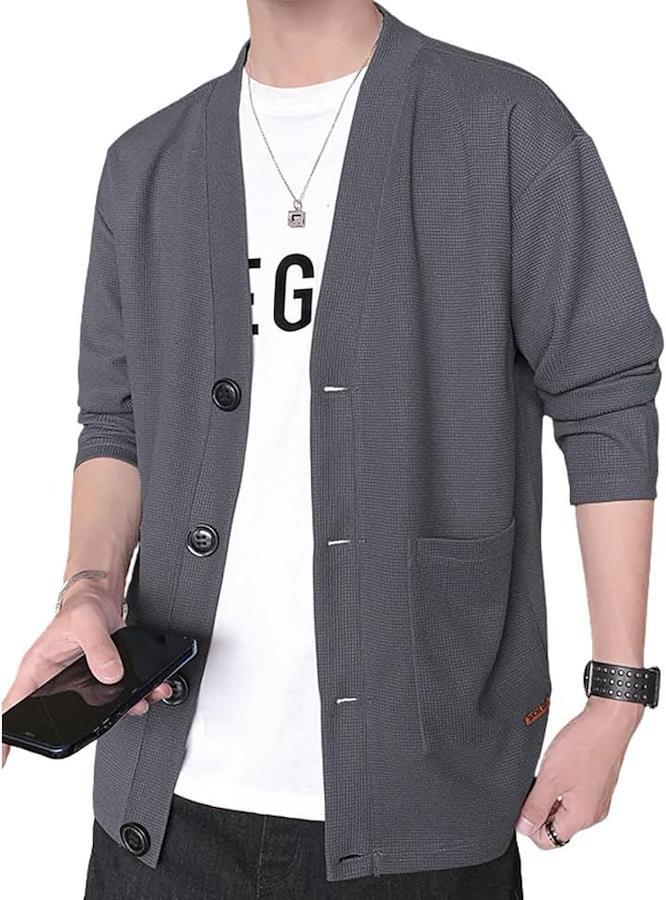 シンプルながらも洗練された印象を与える「ワッフル編みカーディガン メンズ」。