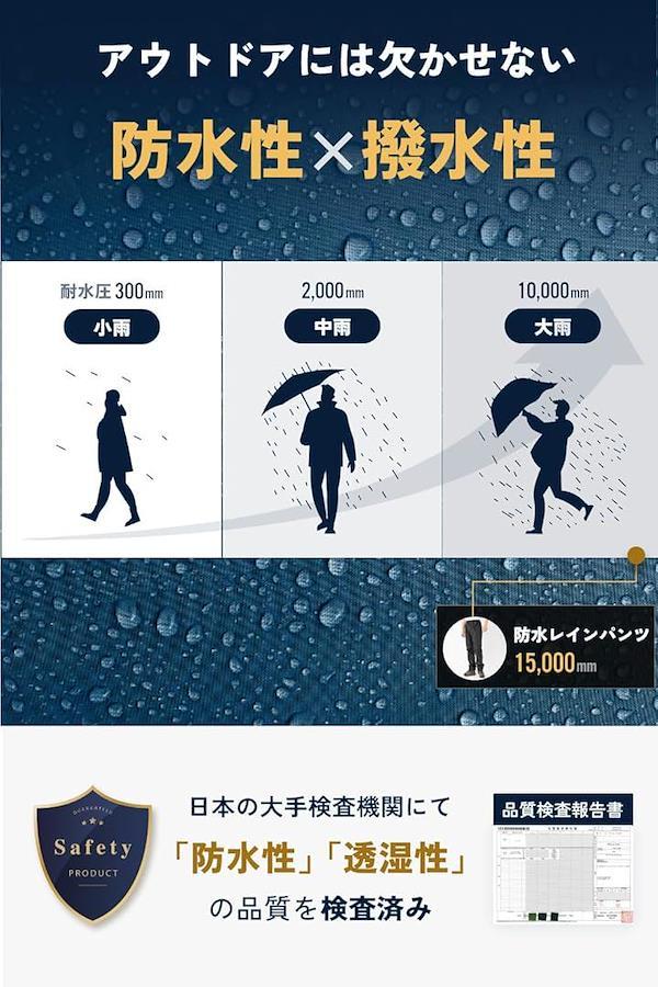 「大雨でも快適」アウトドアや雨の日の通勤・通学に最適。「耐水圧15000mm&透湿度10,000g/m2」の高機能レインパンツ。