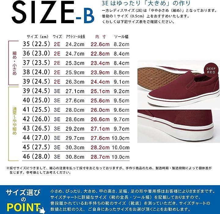 ・2Eレディースサイズ(22.5~24.5)」は細めの作りとなります、特に22.5~23.5については、0.5cm上のサイズをお選び頂くことをお勧めします。