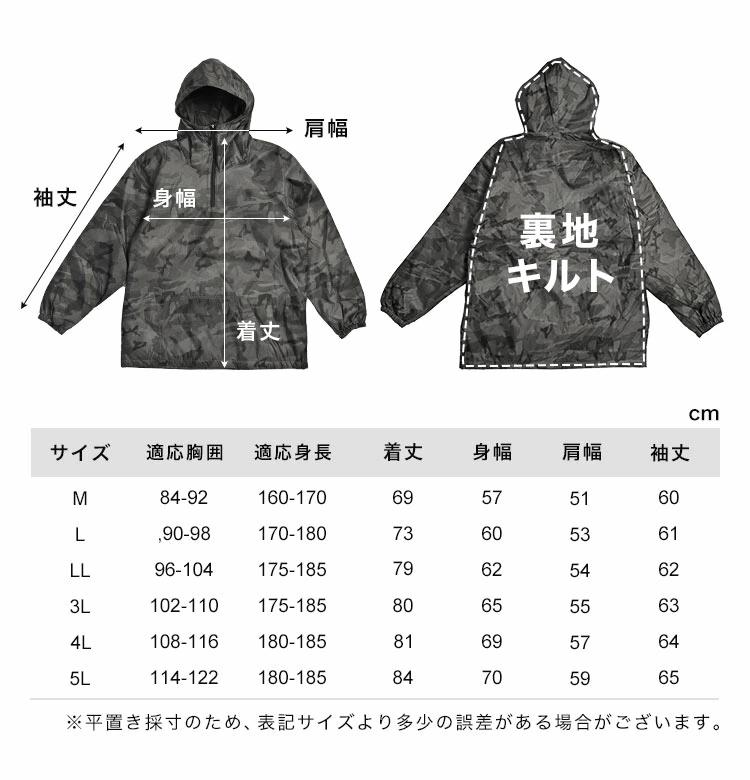 ■サイズM(適応身長 160~170/適応胸囲 84~92/着丈 69/身幅 57/肩幅 51/袖丈 60)cmL(適応身長 170~180/適応胸囲 90~98/着丈 73/身幅 60/肩幅 53/袖丈 61)cmLL(適応身長 175~185/適応胸囲 96~104/着丈 79/身幅 62/肩幅 54/袖丈 62)cm3L(適応身長 175~185/適応胸囲 102~110/着丈 80/身幅 65/肩幅 55/袖丈 63)cm4L(適応身長 180~185/適応胸囲 108~116/着丈 81/身幅 69/肩幅 57/袖丈 64)cm5L(適応身長 180~185/適応胸囲 114~122/着丈 84/身幅 70/肩幅 59/袖丈 65)cm※平置き採寸の為、多少の誤差がある場合がございます。