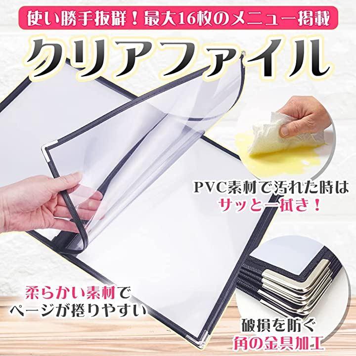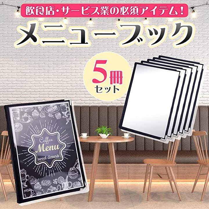 ・「セット内容」メニューブックx5冊 「サイズ(約)」23.5cmx31.5cm 「材質」PVC 「カラー」ブラック
