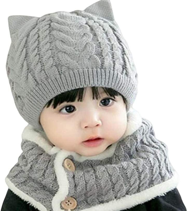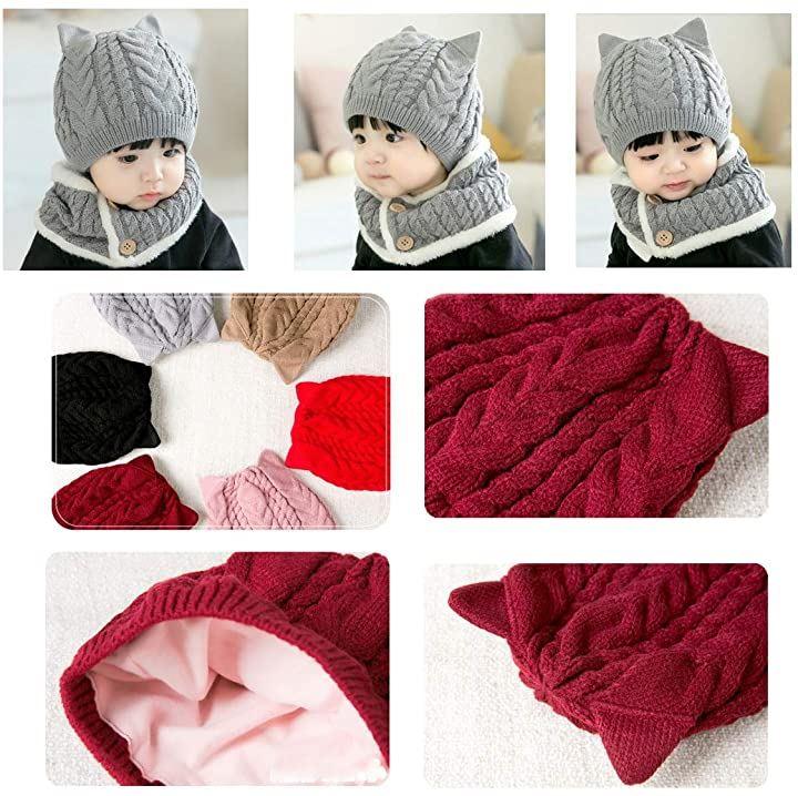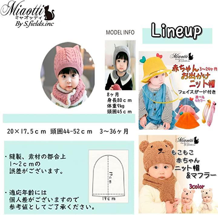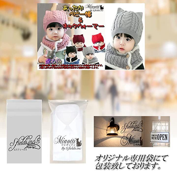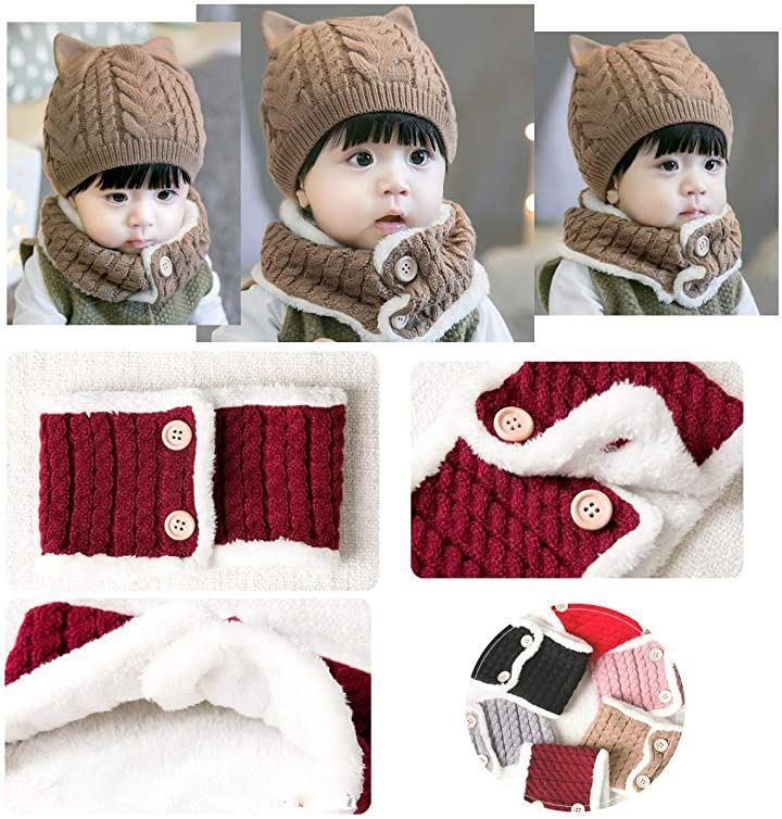 [ミャオッティ]ベビーニット帽子ネックウォーマーセット赤ちゃん新生児冬耳付き防寒対策0~2歳フリーサイズ