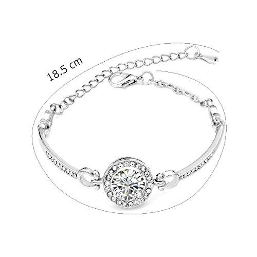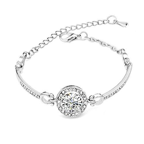 ?「豪華で上品」シルバーの輝き、上質な天然ダイヤモンドのような輝きを実現しており、動くたびに光を充分に取り込んで眩しい輝きを放つ、エレガントのクリスタルはブレスレットの高級感をよりよい演出してくれます。
