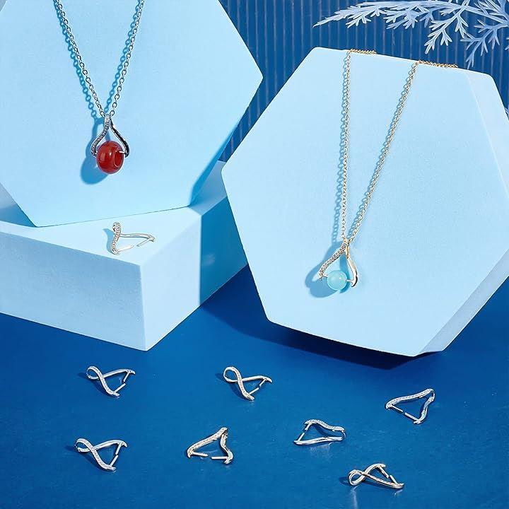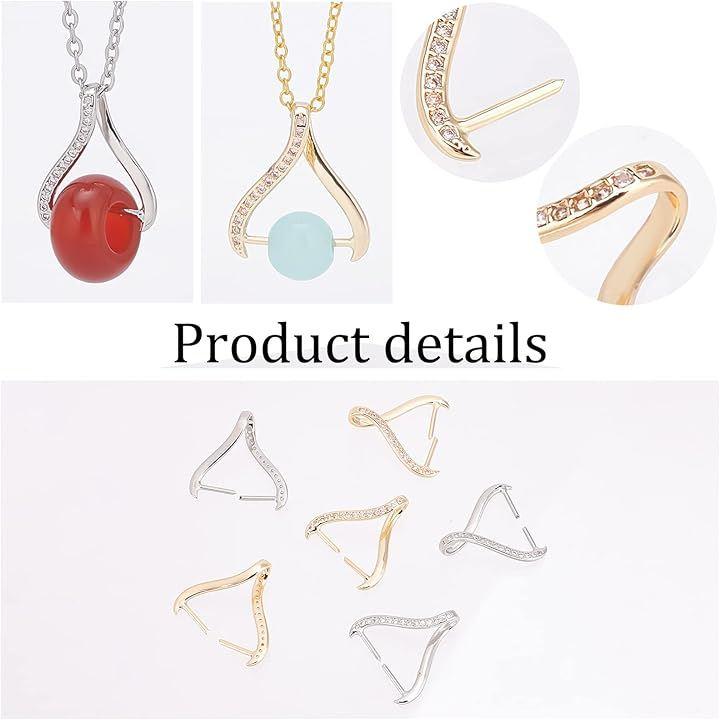 セット内容:ペンダント用留め具10個(ゴールド、シルバー)の2色、各5個ずつ 大きさは約18x20x5.5mmです。