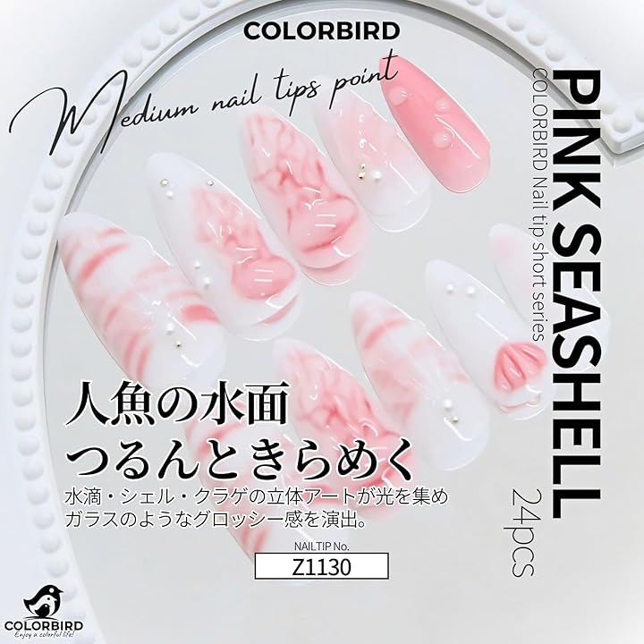 海の世界を指先に映し出す、マーメイドモチーフの立体ネイルチップ。
