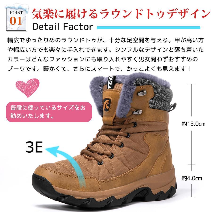 クロージャータイプ レースアップ 【冬をオシャレで暖かく過ごせるょう!スノーシューズ 裏起毛】内側には足先までふかふかと触り心地のよいフリースのような素材を起用し、足を優しく包み込むので寒い外気から足を守ります。足を入れた瞬間から暖かさを実感できるボアをつま先まで全面に施し防寒性が格段にアップ。保温性高いムートンカップインソール付き。?防寒防臭吸湿可能。取り出し可能、しっかり清潔感を保ちます。冬場の冷えから、ふんわり暖かく足元を守ります。防寒対策にピッタリで冬の通勤・通学・お出かけに暖かさを提供します。【雪国にも対応・安心の透湿防水仕様!防寒靴 撥水加工】耐水圧のアッパー素材なので、水の染み込むことをガッチリ防ぐことができ、水分の多い雪にも強く、積雪や降雪時靴内の爽やかを保ち、湿気から逃れ。日常のお出かけや通学や普段履きにはもちろん、雪国への旅行などにも気楽で遊んで行けます。(しかし、完全防水ではありません。雨や雪の中の長時間の着用時には、水が浸み込む場合があります。)【雪・雨の日でも安心の滑らない!冬靴 防滑】ソールには低温時でも硬化しない「ウィンターグリップソールラバー」。雪、雨の日に滑りにくい分厚く凹凸のあるソールで、悪路もしっかり捉えるアウトソールグリップカのあるアウトソールは濡れた地面や雪道などの悪路でも歩きやすく、野外での活動をしっかりサポートしてくれます。【デザイン性と機能性を兼ね備え!スノーブーツ 防寒】デザイン性と機能性を兼ね備え、雪の日だけでなく寒い時期のファッションアイテムとしてもおすすめです。①ソフトなフィット感で快適性に優れており、さらに軽量のため長時間履き続けていても足を疲れさせません。②日本人の足に合う形状で仕上げ、足首ホールドシステムを内蔵することでフィット感を高めています。【多機能満載! スノーブーツ 人気】寒い季節の防寒・防滑対策に、一足持っておくと便利なスノーブーツは寒冷地への旅行にもぴったりです。シンプルなデザインと落ち着いたカラーはどんなファッションにも取り入れやすく男女問わずおすすめの防寒ブーツです。タウンユースはもちろん、キャンプなどのアウトドアシーンでも、足元を暖かく快適に。 当店の商品は全て、専門スタッフによる検品済みです。ご購入後30日以内