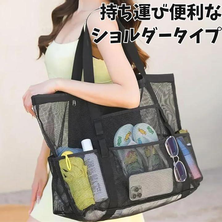 水着や着替え、ビーチサンダルなどの大きなアイテムからスマホなどの小物まで全部一つに収納できる、便利な収納バッグです。