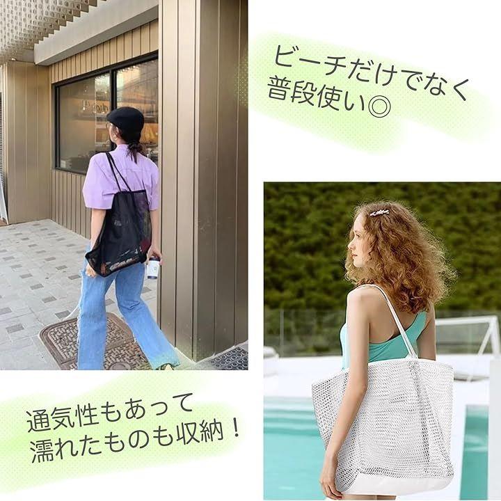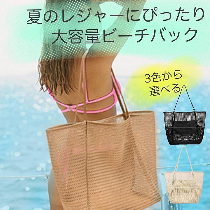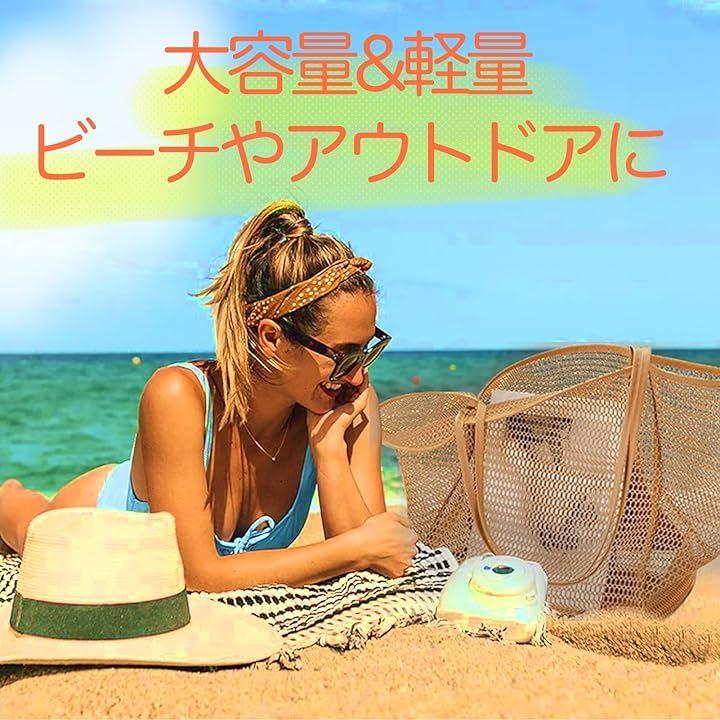 「大容量のメッシュバック」この大容量メッシュビーチバッグは、水着、バスタオル、日焼け止め、着替え、おやつなど…すべてを一つにまとめて持ち運べる頼れる相棒。