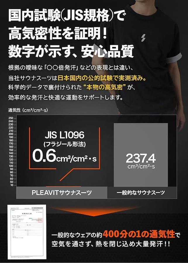 通気性は一般Tシャツの約400分の1で、サウナ効果をしっかりサポートします。