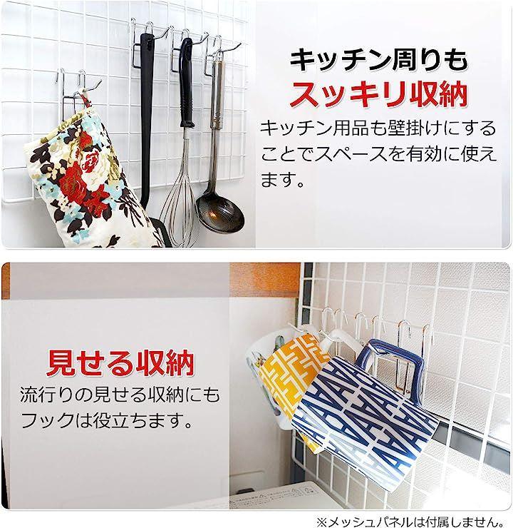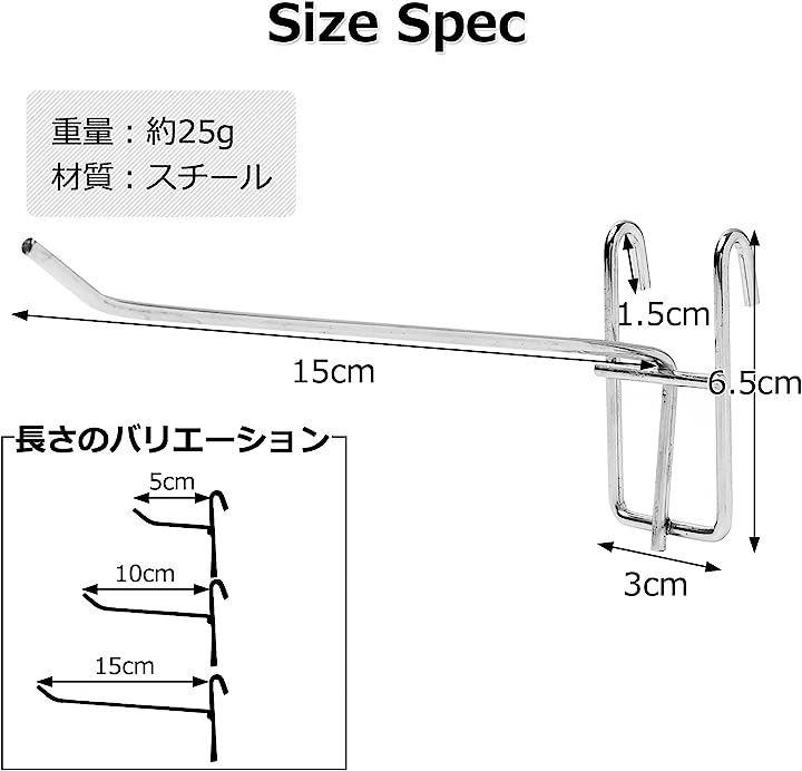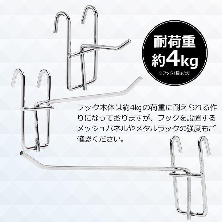 ラックやメッシュパネルでご利用いただける耐久性にすぐれたスチール製のフックです。
