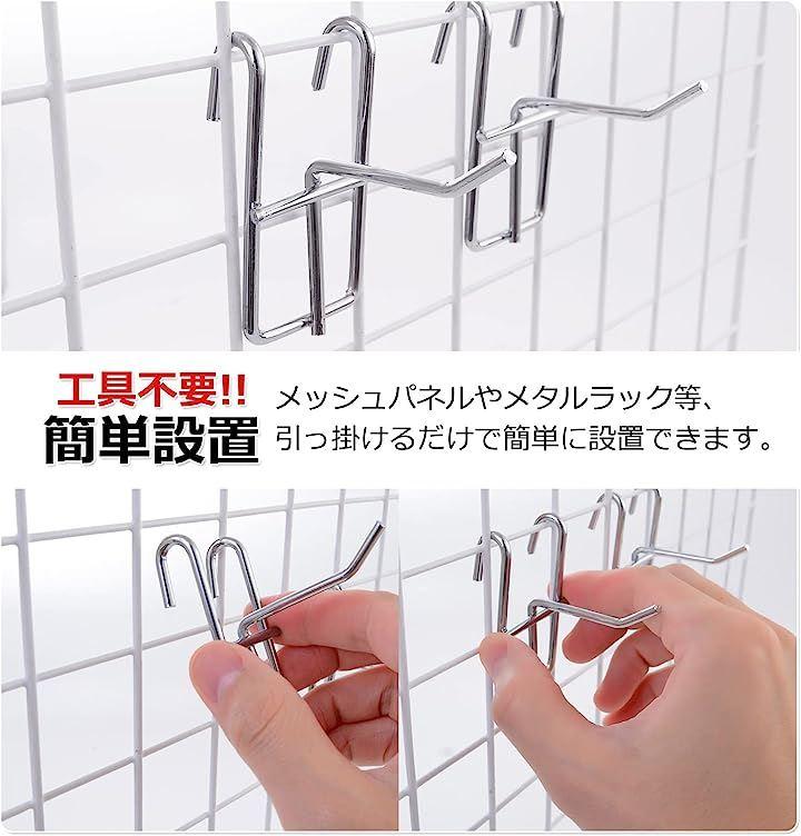 メッシュパネルやラックにただ引っ掛けるだけですぐにご使用いただけます。