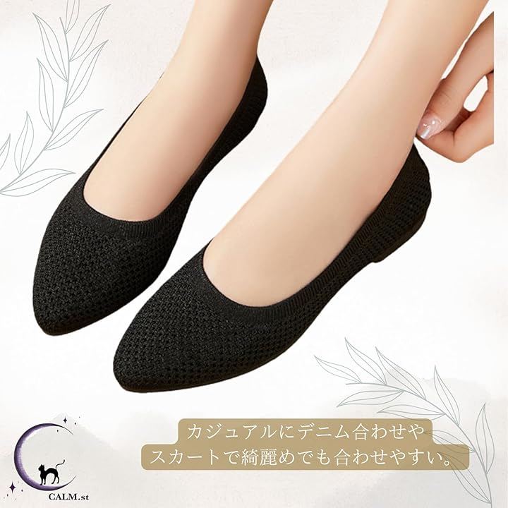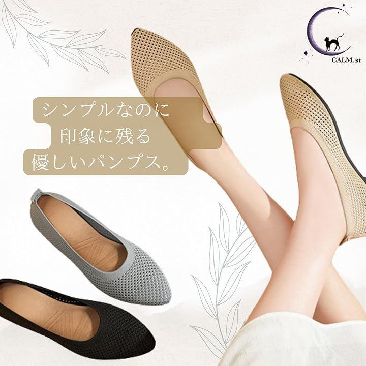 ・ポインテッドトゥで縦ラインを強調し、脚を細く長く見せる美脚シルエット。