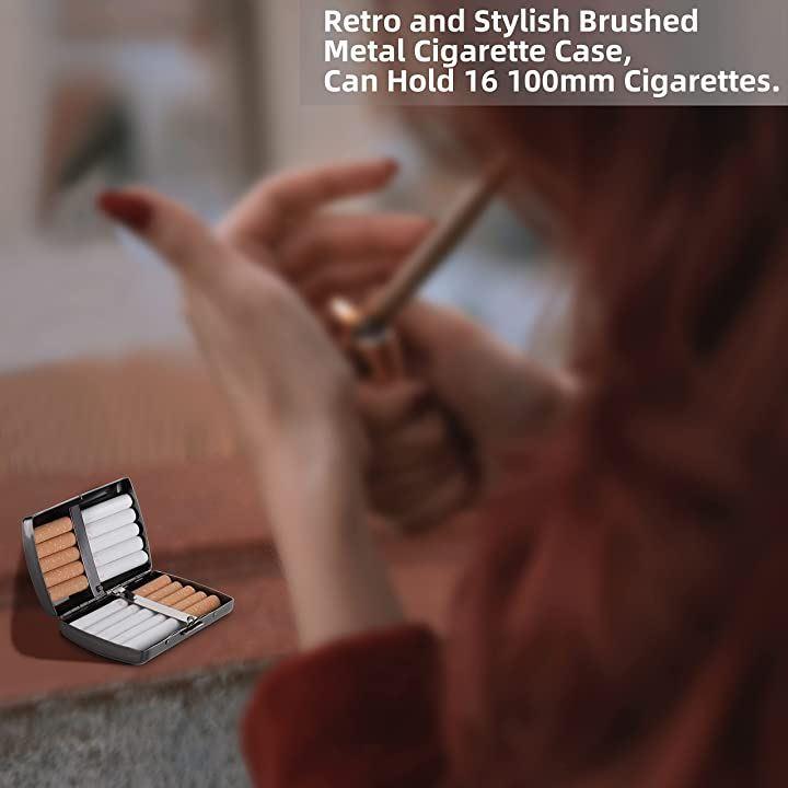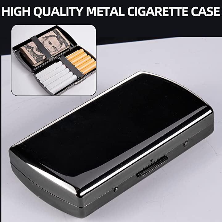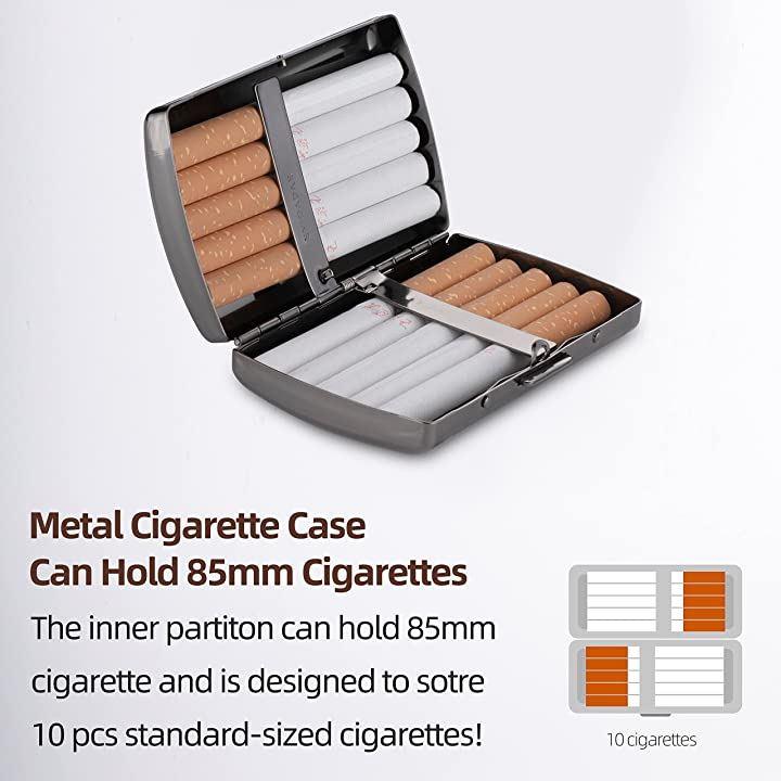 金属製のシガレットケースには、85mmのシガレット用に10~12個のレギュラーサイズのシガレットを収納できます