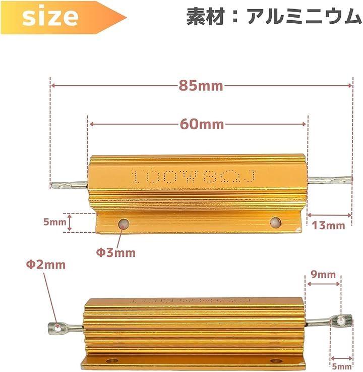 ・「商品詳細」出力:100W|抵抗値:1Ω|材質:アルミニウム・「サイズ」全長:85mm|ボードサイズ:60mm|穴ピッチ45mm|接続部:13mm(穴位置:9mm)