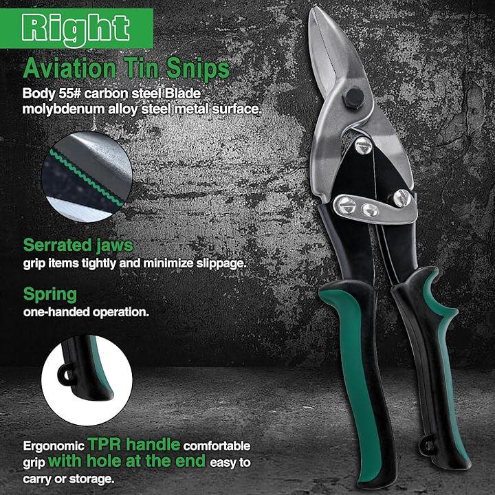 Aviation Snip 」「仕様」材質: 本体:55ゲージ炭素鋼、刃:モリブデン合金鋼、表面:金属表面、ハンドル:人間工学に基づいた持ちやすいハンドル、「サイズ」:247 x 53.5 x 25.6mm/9.7x2.3x1「注意事項」1. 怪我を避けるため、子供の使用を禁止する。