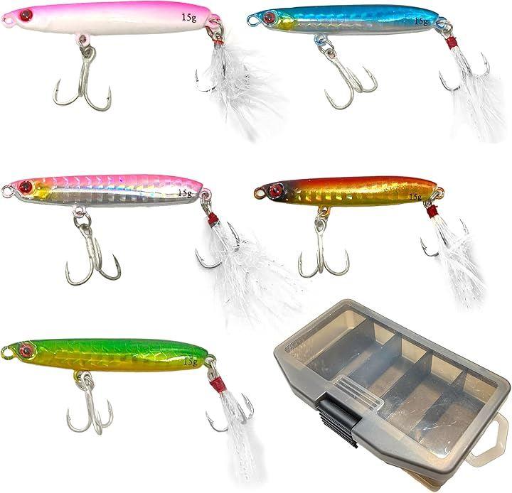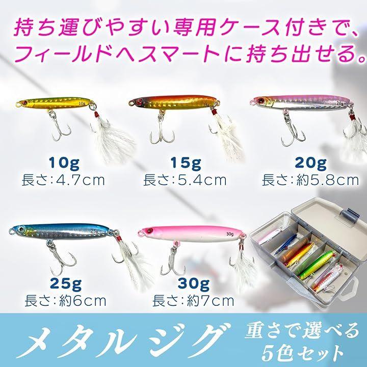 「持ち運びに便利な専用ケース付き」5色のメタルジグを整理して収納できる専用ケースが付属。