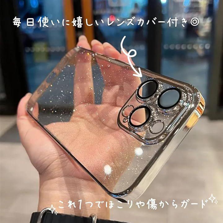 クリアベースなので、本体カラーも楽しめる: iPhone自体のカラーを活かしつつ、ラメの煌めきを重ねることで、自分だけのオリジナルな組み合わせに。