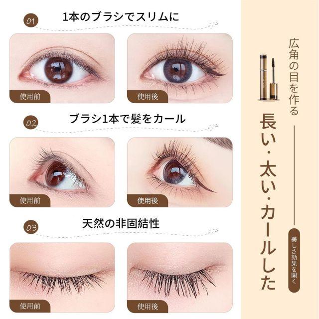 繊維配合&カールキープ技術で1日中美しいまつ毛特殊カールキープマスカラフォーミュラ採用。まつ毛の根元から先端までしっかりホールドし、1日中カールが持続。さらに繊維配合で、まつ毛が長く見えるような錯覚効果を実現します。