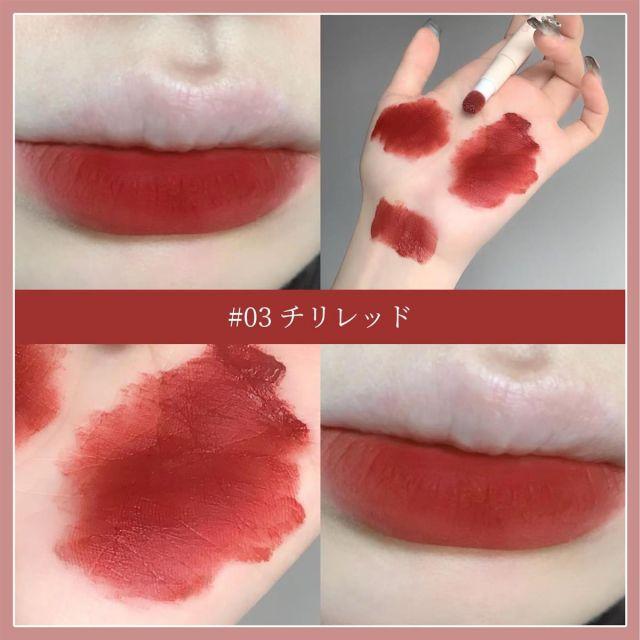 カラー:03チリペッパー◆商品名:METYSURマットリップふわふわぼかし落ちない乾燥しないなじみ潤い軽いしっとり保湿口紅高発色密着ムーステクスチャーエア泥リップ