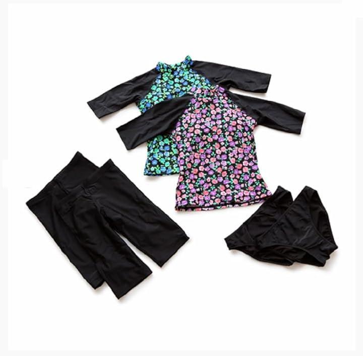 半袖トップスと5分丈ハイウエストパンツ、ビキニパンツで気になる体型もカバーします。