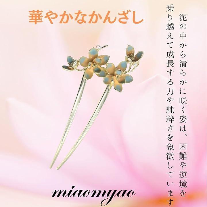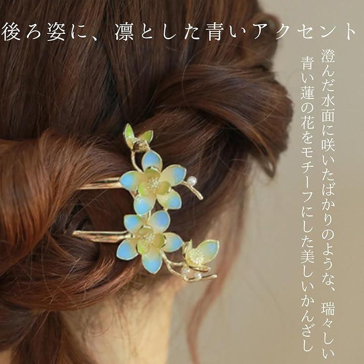 「華やかな蓮の花の簪」華やかに咲き誇る四輪の蓮の花をイメージしたU字かんざしは、花びらが大きく開花し存在感のあるかんざしです。