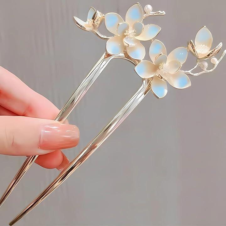 「ヘアアレンジアップ」U字型簪は普段使いとして、お団子ヘアに挿したり、ハーフアップ、フルアップ、編みおろしにもおすすめで、魅力的なヘアアレンジで女子力をアップ。