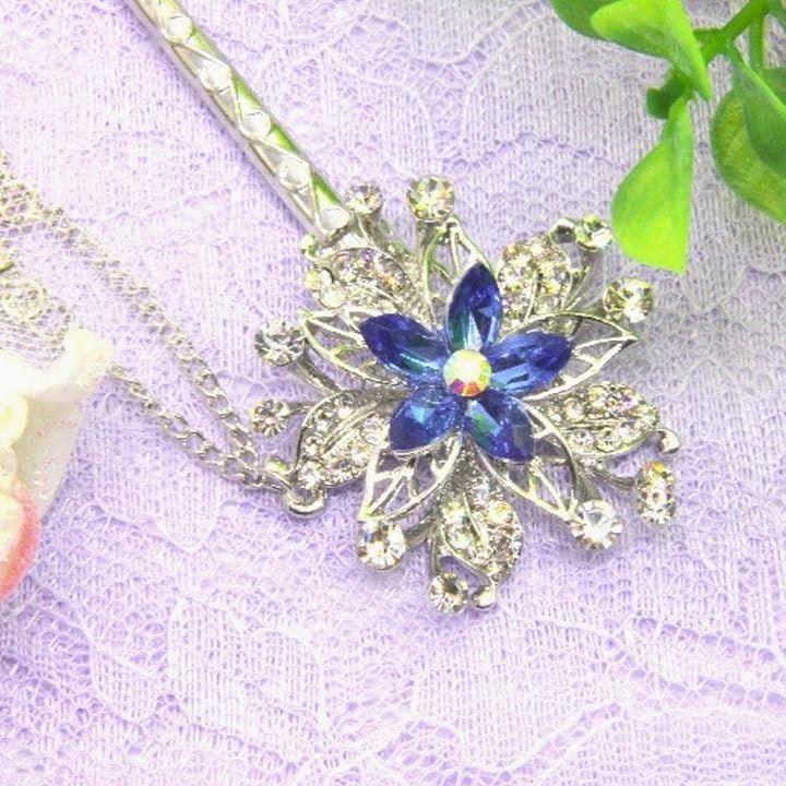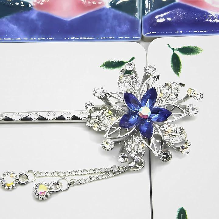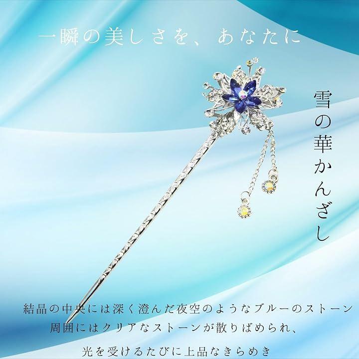 「雪のフラワーデザイン」シルバーのヘアスティックに人気モチーフの透明感のある雪の花をイメージしたデザインは、雪の結晶のようなクリアな輝きを放ち、繊細な美しさを持ち、貴女の髪に華やかさを添えます。