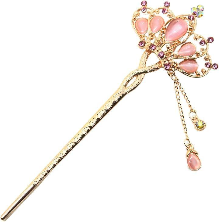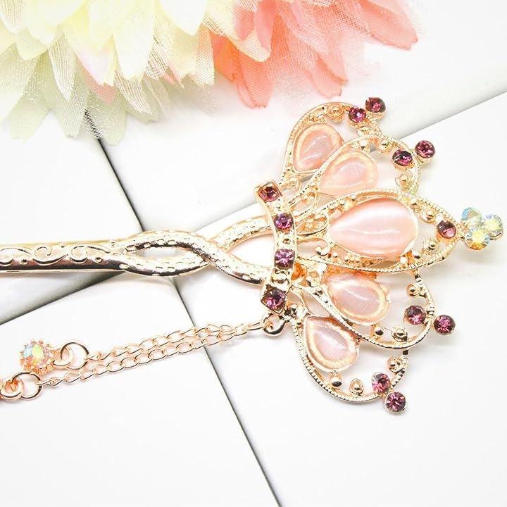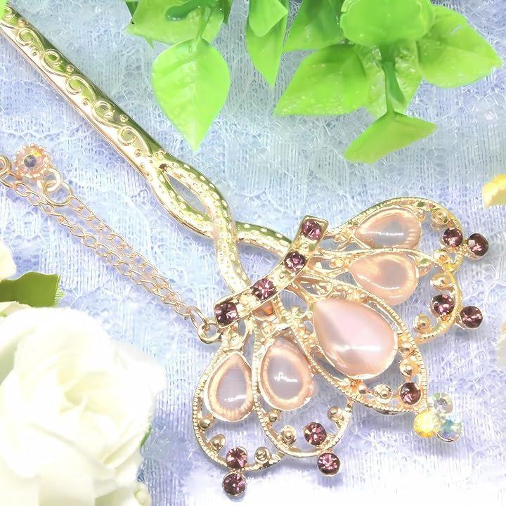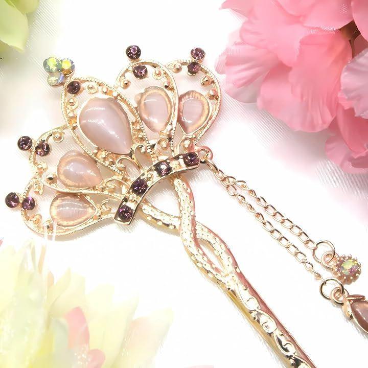 ピンクゴールドのヘアスティックの色合いが柔らかい女性らしさを引き立てます。