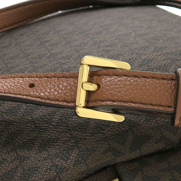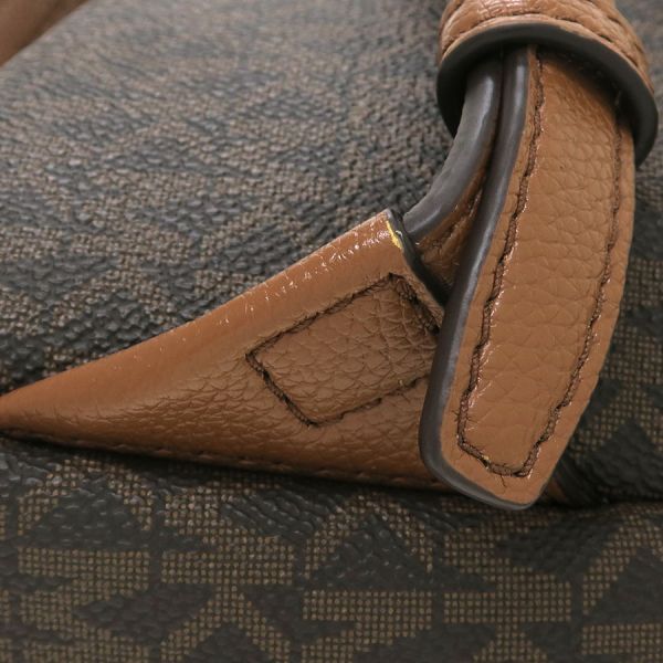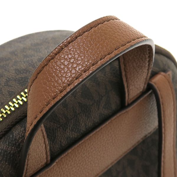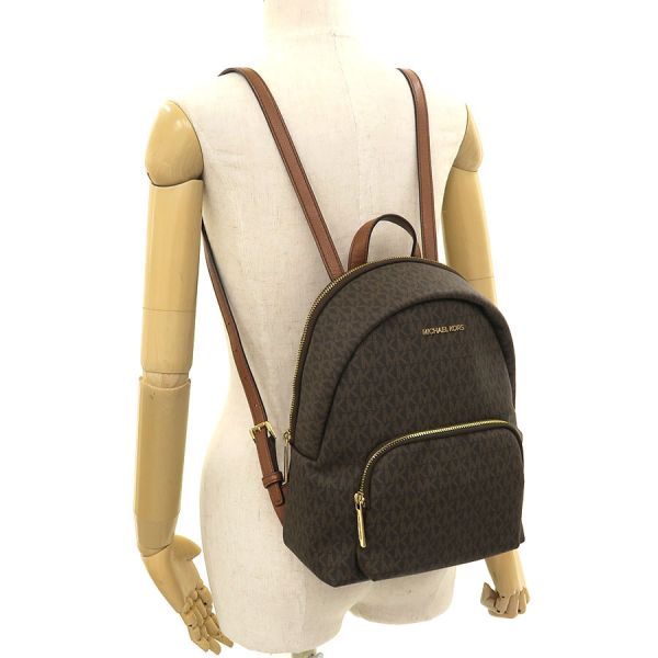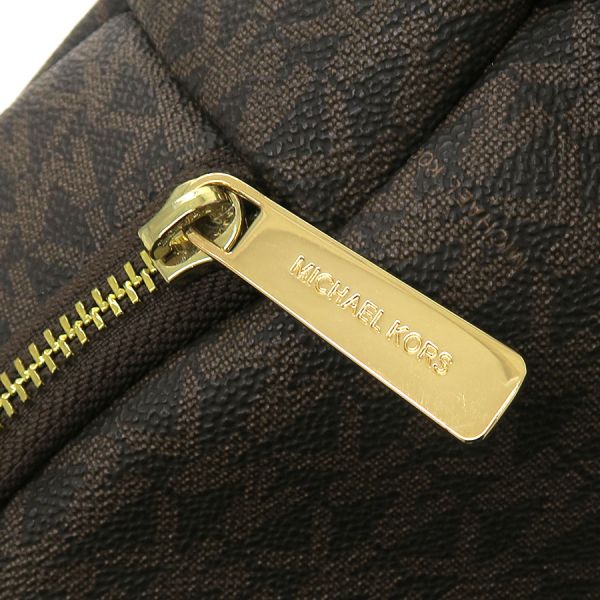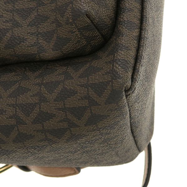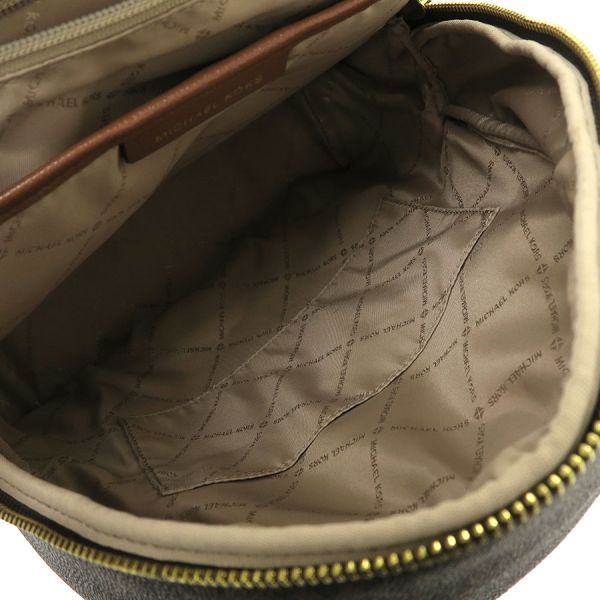 マイケルコースのリュックのご紹介です!MKマークが総柄になったデザイン。上部持ち手やショルダー部分はレザー使用。ファスナーや金具はゴールドカラーで高級感がございます。開閉はファスナー式で、中はファスナーポケット1つ、ポケット2つあり。ショルダー部分は左右ともバックル留めで5段階ずつ長さ調整可能。☆状態は、本体の型崩れ、表面のスレ・薄汚れ、角や縁のスレ、ファスナーや金具の小傷・くすみ、中の薄汚れ、内ポケットの中のペン跡・着色汚れが少々ある程度ですよ!デイリーユースにオススメ!